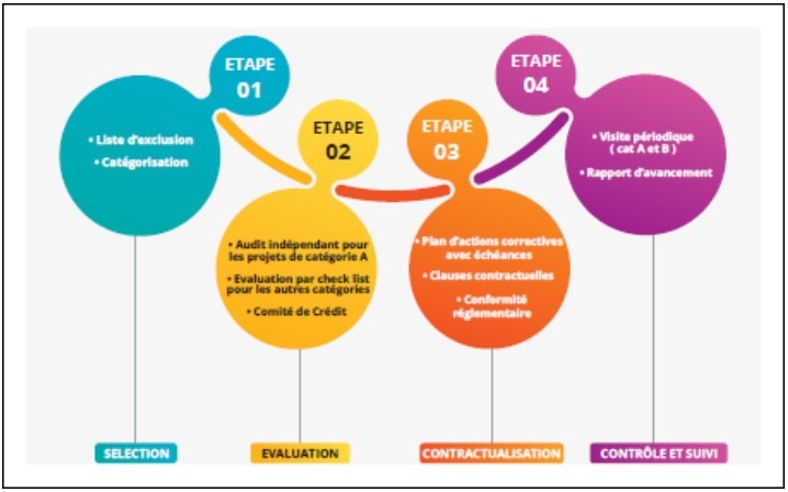 Le dispositif de gestion des risques sociaux et environnementaux adopté par ABI vise à identifier, le plus tôt possible, tous les impacts sur l’environnement et les conditions de vie des populations de ses financements et, à apporter les mesures correctives pour éviter, atténuer ou réduire ces impacts durant la maturité des prêts.